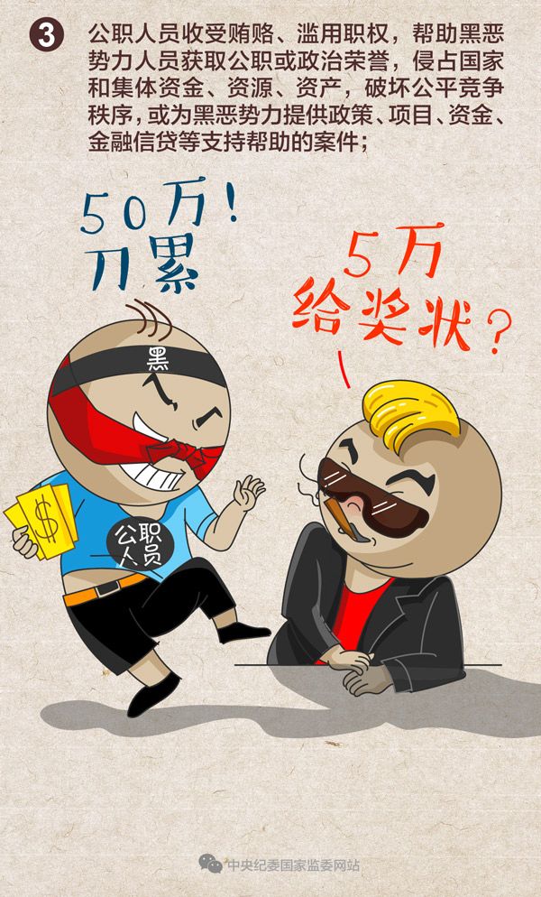 近日,国家监委会同最高法、最高检、公安部、司法部研究制定了《关于在扫黑除恶专项斗争中分工负责、互相配合、互相制约严惩公职人员涉黑涉恶违法犯罪问题的通知》。《通知》要求,各级监察机关、人民法院、人民检察院、公安机关应聚焦黑恶势力违法犯罪案件及坐大成势的过程,严格查办公职人员涉黑涉恶违法犯罪案件。重点查办以下案件: