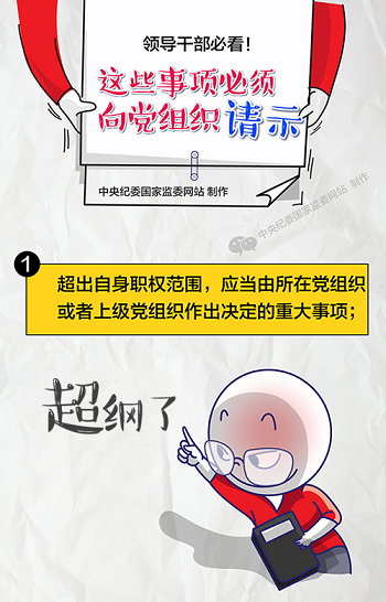 请示报告制度是我们党的一项重要政治纪律、组织纪律、工作纪律,是执行民主集中制的有效工作机制。近日,中共中央印发了《中国共产党重大事项请示报告条例》。根据规定,领导干部应当向党组织请示、报告下列事项: