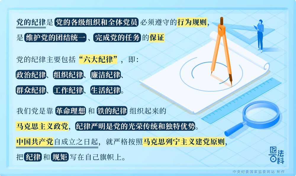 我们党是靠革命理想和铁的纪律组织起来的马克思主义政党,纪律严明是党的光荣传统和独特优势。中国共产党自成立之日起,就严格按照马克思列宁主义建党原则,把纪律和规矩写在自己旗帜上。