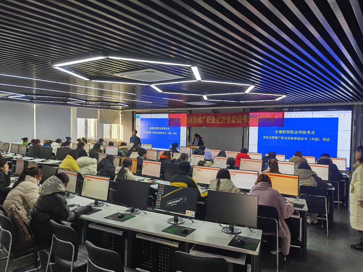 为贯彻落实《国家职业教育改革实施方案》中1+X证书制度试点工作的要求,加快推进我校课证融通教学改革实践,根据教育部1+X证书试点工作安排,1月9日,经济贸易学院网店运营推广(中级)职业技能等级证书考试在第二实训楼903进行,经济贸易学院电子商务专业66名学生参加了此次考试。
