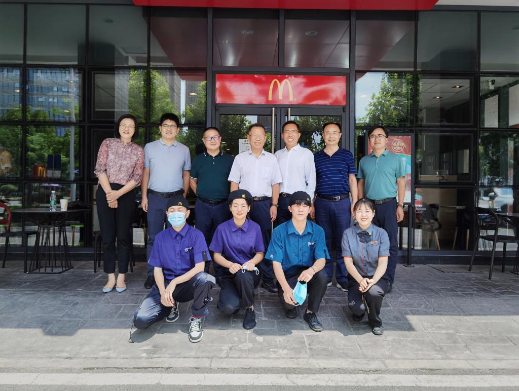 刘银国一行先后来到安徽省公路桥梁工程有限公司、安徽麦当劳餐厅食品有限公司、安徽国力物流有限公司、安徽邻几便利店有限公司、合肥荣事达电子电器集团有限公司、合肥华润万家OLE精品超市、合肥贝壳房地产公司、合肥宝勋体育用品商贸有限公司、合肥比亚迪4S店、上海特朗思大宇宙信息服务有限公司合肥分公司、仟吉蛋糕天鹅湖万达店、正大集团合肥分公司、百世物流科技(中国)有限公司安徽分公司等企业看望了在企业就业和实习的我校学生,与他们进行了亲切的交流和座谈,了解学生在就业实习过程中遇到的困难和问题,强调在工作时要严格遵守疫情防控的规定,并鼓励大家在工作岗位上不断学习、提升自我,发扬团结协作精神,培养创新意识和能力,希望同学们在工作岗位上取得更大成就,为企业添彩、为母校争光,为加快建设新阶段现代化美好安徽贡献自己的力量。