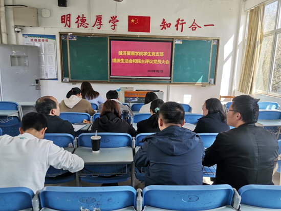 2022年3月9日下午,经济贸易学院学生党支部在3202教室召开2021年度组织生活会暨民主评议党员大会。支部全体党员同志参会,党总支副书记丁蓉主持会议。