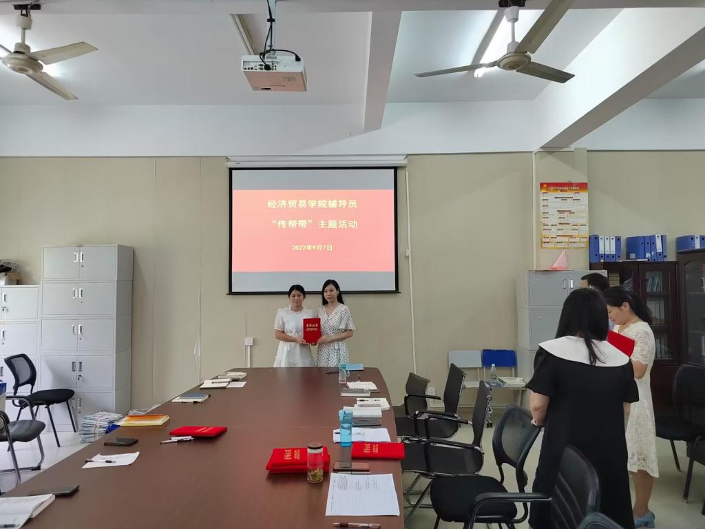 为扎实做好经济贸易学院学生管理服务工作,为新老辅导员提供相互学习,共同进步的平台,经济贸易学院于9月7日举行辅导员“传帮带”活动。经济贸易学院党总支书记陶云龙,副书记丁蓉,学生秘书以及全体专职辅导员参加了此次活动。