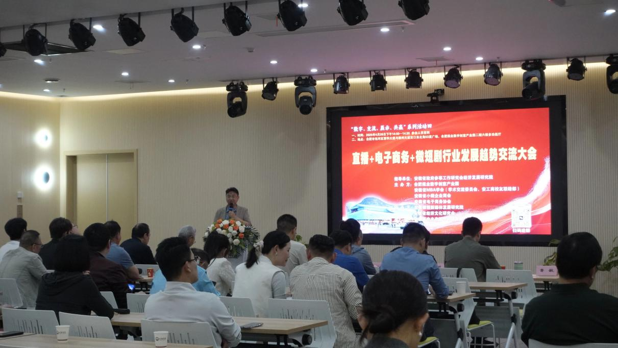 4月26日,由安徽省电子商务协会联合安徽省MBA学会(学术交流委员会、安工商校友联络部)等多家权威机构主办,安徽省政府参事工作研究会经济发展研究院指导的《直播+电子商务+微短剧行业发展趋势》交流大会在合肥报业数字创意产业园隆重召开。活动以“数字、交流、展示、共赢”为主题,汇聚学界、业界顶尖专家,围绕数字内容产业的技术革新与生态重构展开深度探讨,为百余位与会者呈现了一场高规格行业对话。
