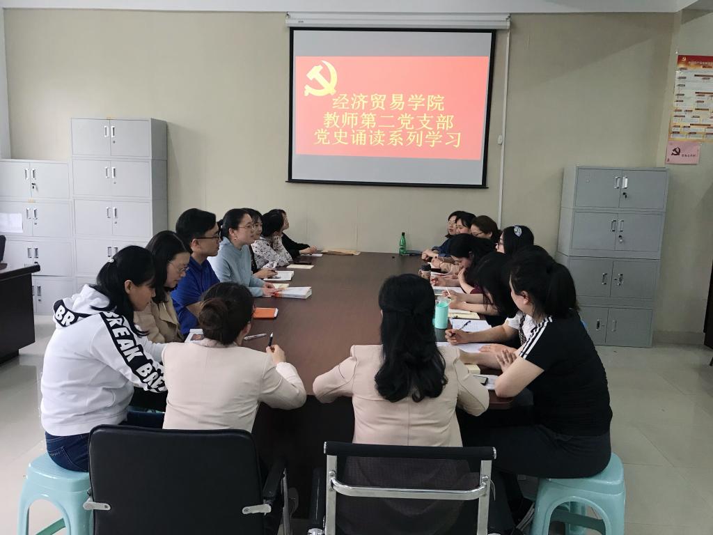 为庆祝中国共产党成立100周年,深入引导广大党员教师树立正确的党史观,用党的光荣传统和优良作风坚定信心、凝聚力量。5月12日下午,经济贸易学院分别在三个党支部开展党史诵读系列活动。以此方式再次重温党的光辉历史和取得的丰功伟绩,激励全体党员学史明理、学史增信、学史崇德、学史力行。重温中国共产党成立一百周年来走过的艰辛历程和动人故事。活动由经济贸易学院三个支部书记分别主持。