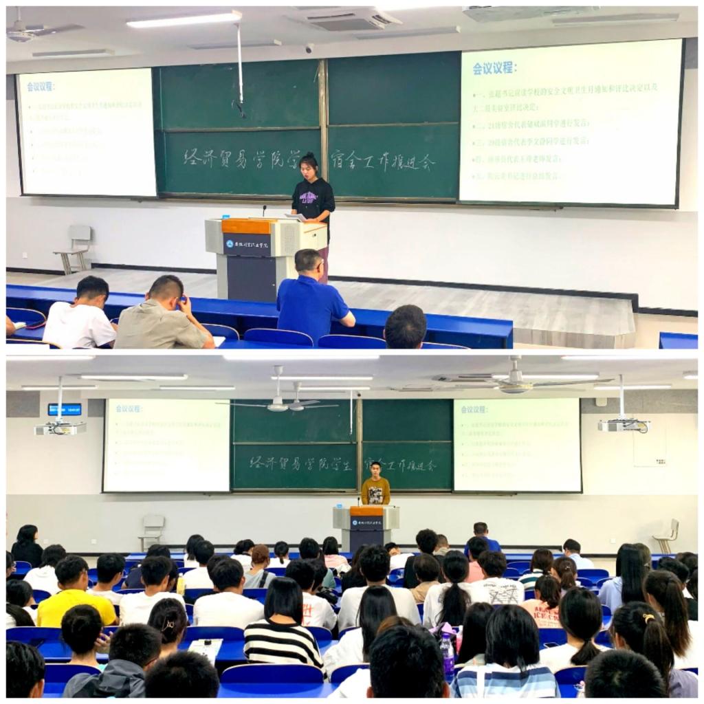 2021年9月28日,经济贸易学院顺利召开学生宿舍安全卫生工作推进大会。经济贸易学院党总支书记陶云龙、副书记丁蓉、团总支书记张超、新生辅导员莅临现场,全体团学干部和新生宿舍长参与会议。