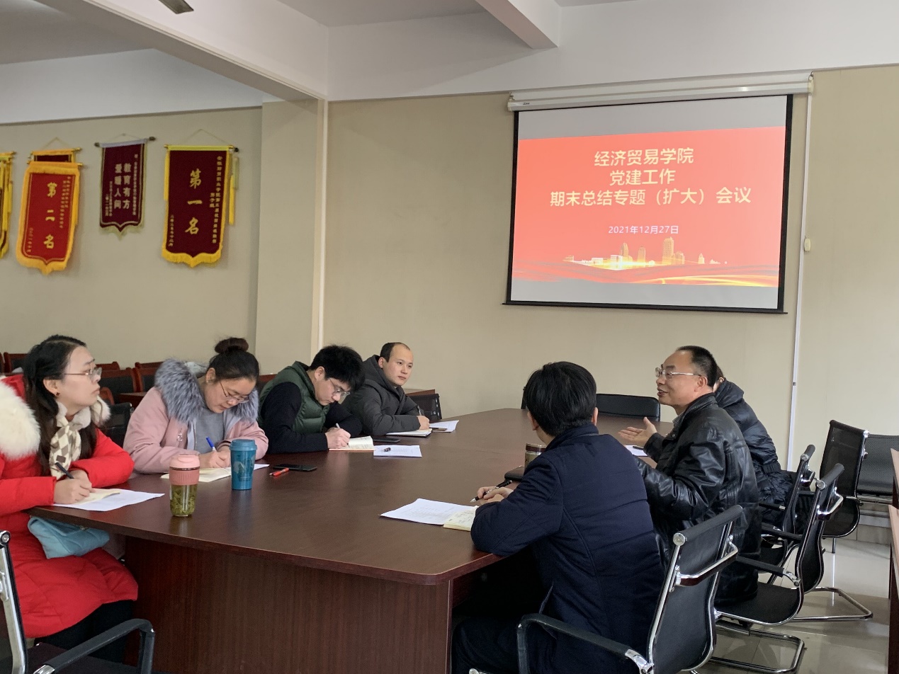 会上,陶云龙对本学期的党建工作做了全面详实的回顾与总结,对本学期取得的成绩表示肯定,同时也指出了党建工作中存在的不足和需要改进的方面。随后,各委员对其负责工作发表意见,认真总结汇报了各支部的主要工作。最后陶云龙对下学期的党建工作提出了要求。他强调,下学期将围绕落实党建基础工作、加强党员发展教育管理服务工作、加强教师党员政治理论学习和教学教育工作相结合、加大党建创新工作力度等四个方面展开,力争使经济贸易学院党建工作扎实有效开展,再上一个新台阶。