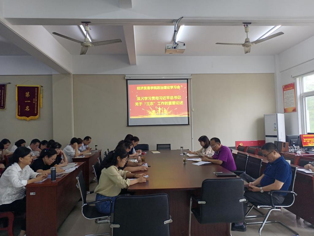 9月14日,经济贸易学院开展学习习近平总书记关于“三农”工作的重要论述的主题政治理论学习会。学习会由党总支书记陶云龙同志主持,全体老师参加。