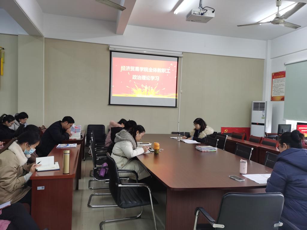 11月30日,经济贸易学院组织集体学习党的二十大报告《坚定不移全面从严治党》、《以中国式现代化全面推进中华民族伟大复兴》,经济贸易学院党总支副书记丁蓉主持会议,经济贸易学院全体教师参加。