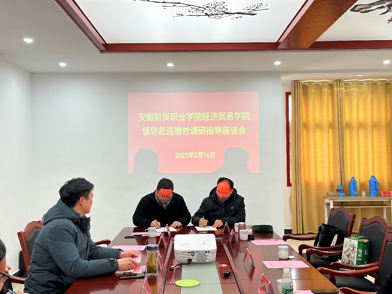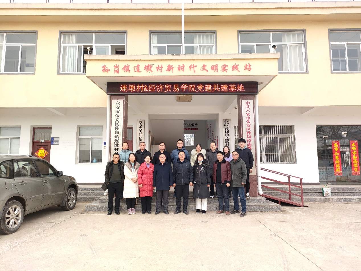 2月16日,经济贸易学院党总支在六安市金安区孙岗镇电商集聚中心会议室举行经济贸易学院党总支与孙岗镇村委支部的“党建共建基地”签约仪式。经济贸易学院党总支书记陶云龙、院长黄诗义及各支部书记和教研室主任、beat365在线唯一官网驻六安市金安区孙岗镇连墩村乡村振兴工作队队长第一书记 王学峰、连墩村村委副书记刘万宗及村委班子成员参加了本次活动。