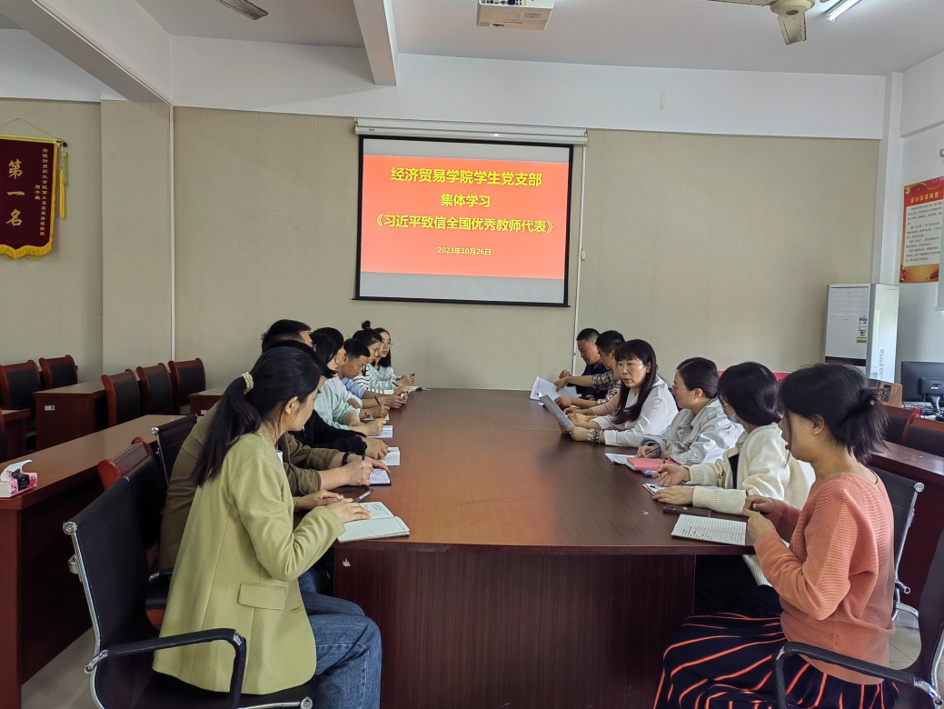近日,经济贸易学院学生党支部组织开展了一系列集体政治学习活动,党支部书记丁蓉主持,全体党员老师参会。