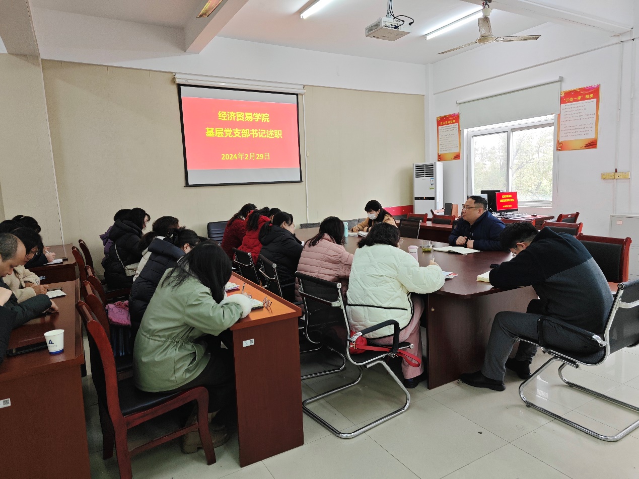 2月29日,经济贸易学院党总支组织召开基层党支部书记述职会议,经济贸易学院党总支委员、各党支部书记和委员参加了会议。会议由经济贸易学院党总支书记刘大俊主持。