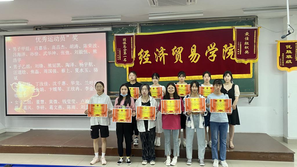 会议表彰了在第十四届安全文明卫生月安、第十九届校运会等活动中获奖的先进集体和优秀个人。开学以来,经济贸易学院认真组织学生参与各项学生活动,充分发扬了团结一心、积极进取的精神,收获满满:在第十四届安全文明卫生月中,物流2003班获得优胜班级荣誉称号,35个宿舍获得学校标兵宿舍荣誉称号,50个宿舍获得学院标兵宿舍荣誉称号。在十九届田径运动会中荣获了团体总分第一名、最佳组织奖等奖项,共获得21枚金牌,39枚银牌和35枚铜牌,并打破三项校运动会记录。