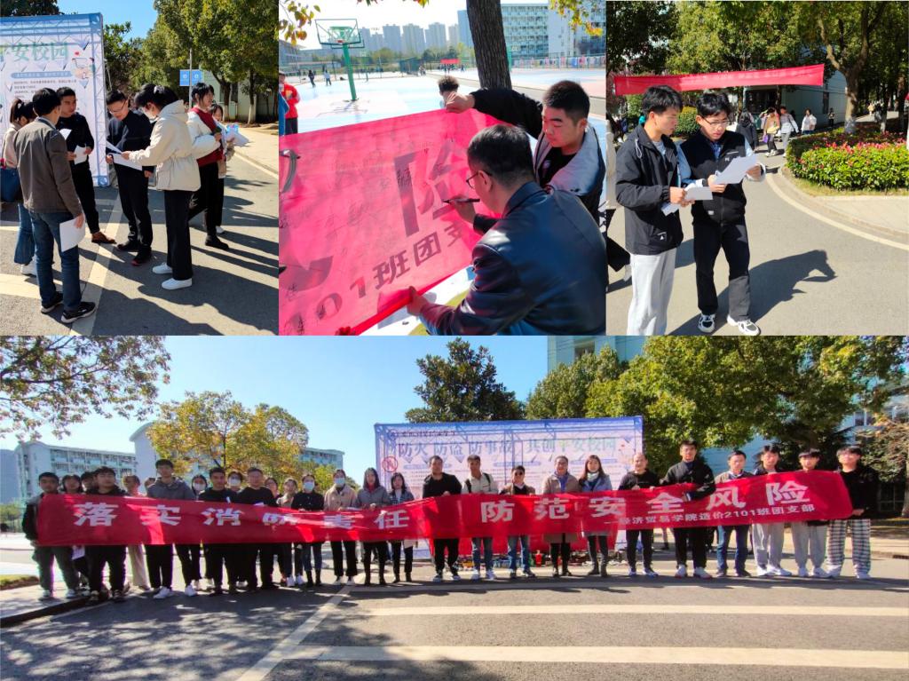 2021年11月9日是全国第30个“消防安全宣传日”,为增强学院广大师生的消防安全意识,进一步宣传消防安全知识,提高预防火灾的能力,经济贸易学院造价2101班团支部组织开展了“119消防安全宣传日”主题团日系列活动。校团委副书记左艳琼、经济贸易学院党总支副书记丁蓉、团总支书记张超亲临活动现场,经贸学院学生秘书、全体专职辅导员、全体寝室长近500名师生员工参与了此次活动。