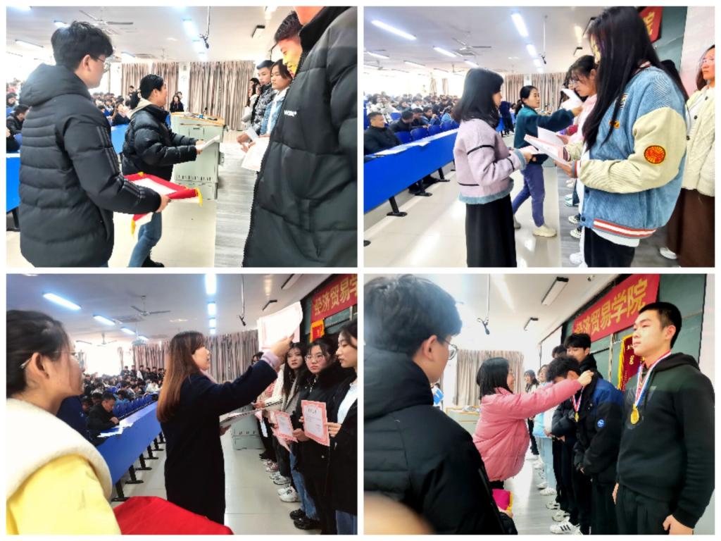 本学期的工作和学习即将落下帷幕,经济贸易学院的每一份荣誉都离不开全体经贸师生的辛勤付出。本次会议让表彰发挥最佳激励作用,发挥优秀学生榜样示范作用,进一步推进经济贸易学院的优良学风建设,不断提升经贸师生的昂扬斗志。全体经贸学子定能将各项活动中展现的良好精神面貌和奋勇拼搏的风采投入到今后的学习生活中,把握当下,向着未来奋勇争先,再创经贸辉煌!(撰稿:胡佳; 审稿:张超))