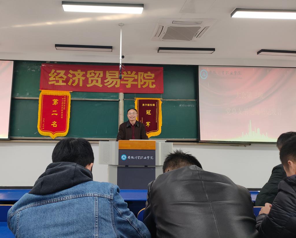会议由学生会主席李文静主持,全会共分为三个会议历程:学生会主席发言、颁奖仪式和陶云龙书记归纳发言。会议伊始,学生会主席胡正峰带领大家一起回顾本学期以来我院学生举办组织、协办参与的各项活动,总结获奖情况。在全院师生精诚合作、共同努力下,经济贸易学院在学校活动赛事中留下了亮眼的身影和不凡的成绩,但仍有需要改进完善之处,期望经贸学子能够日积月累共创佳绩。而后,颁奖仪式正式启动。奖项包括2021-2022学年第一学期开展的优秀班助评选、大合唱比赛、叠军被大赛、心理趣味运动会、最美宿舍评选、标兵宿舍评选等活动项目。其中最引人注目的球类比赛,历经一个月的激烈角逐,经济贸易学院的篮球队男生组获新老组双冠,女生组第二;排球队获新生组总排名第一;足球组获新生组总排名第一的优异成绩。锦标赛作为我校传统项目,充分贯彻落实了体育强国的政策,更展现当代大学生奋勇拼搏的精神风貌。颁奖后,田径锦标赛领队徐盼盼鼓励同学们下学期继续拼搏、积极参赛,为经贸荣誉而战。