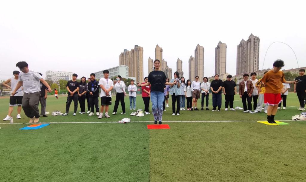 本次趣味运动会分为摸石过河、指压板跳绳、五人六足和接力托球跑四个单项活动,活动以小组为单位参加,四项活动总计时最短的小组获胜。活动开始,团学干部抽签分为六组,每组五人。每场比赛场务提前布置活动场地,主持人宣读比赛规则,比赛中裁判员负责评判和计时。各组成员精神振奋、意气风发,怀揣着热情和自信全身心投入到赛场之中,构成了一幅青春活力的画卷。活动结束后,全体团学干部与到场老师合影留念,并颁发奖品。