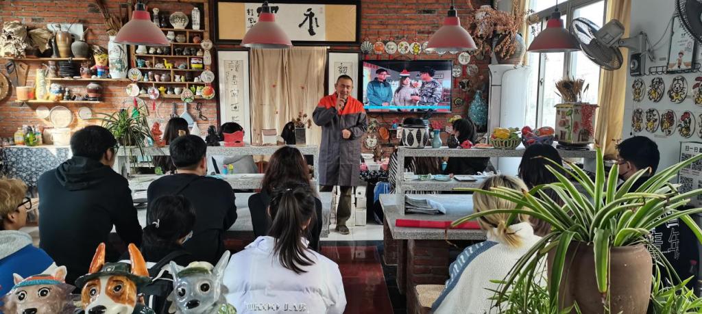 走进充满艺术气息的禾美陶艺馆,馆长何健老师带领协会成员参观了手工陶艺制作工作室、陶瓷绘画工作室、陶瓷影像工作室、高温陶瓷电窑、中温烤花电炉、陶瓷专业拉坯机、辘轳拉坯机、陶瓷影像图纸打印机、教学视频等全套陶艺制作、陶瓷绘画所需设备和物料。何老师为同学们详细介绍了陶瓷的发展历程,各种瓷器的美学艺术性,让同学们感受到了传统文化的魅力。