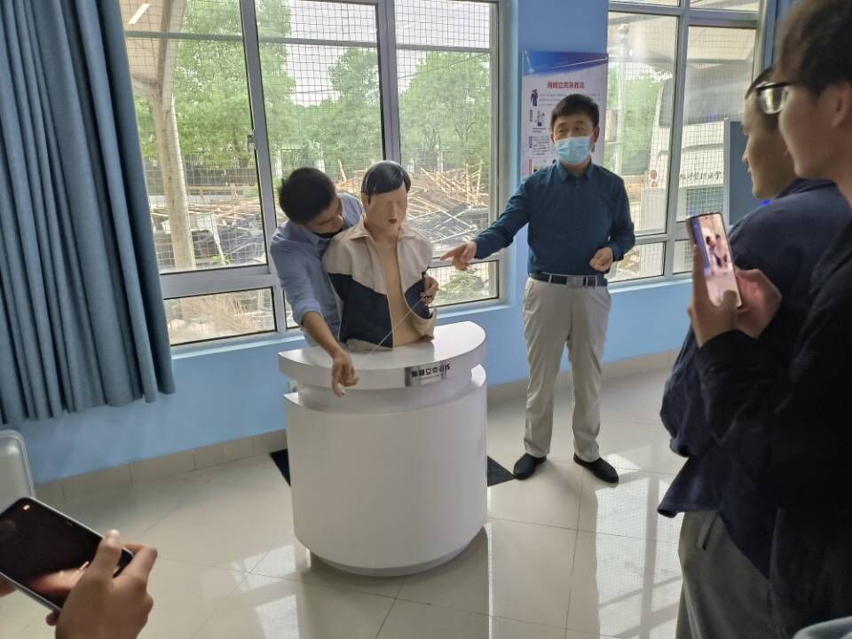 本次活动由保卫处洪玉平处长和专职辅导员徐浩老师带队。活动中,洪玉平处长向同学们讲解并演示了灭火器的使用方法、心肺复苏的正确方法、海姆立克急救法、火灾安全逃离方法,讲解了吸毒的危害等一系列安全问题。同学们学习热情高涨,自觉利用现场的设备进行模拟操练、参与安全答题活动。