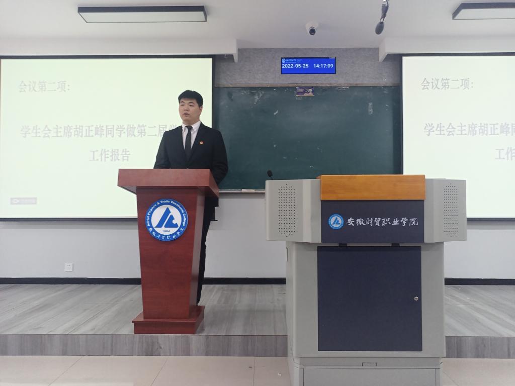 伴随着庄严的国歌声,本次大会拉开了序幕。第二届学生会主席代表胡正峰总结了学院学生会过去一年的各部门工作开展情况及所取得的成绩,并在报告中表达了对学生会的热爱之情。