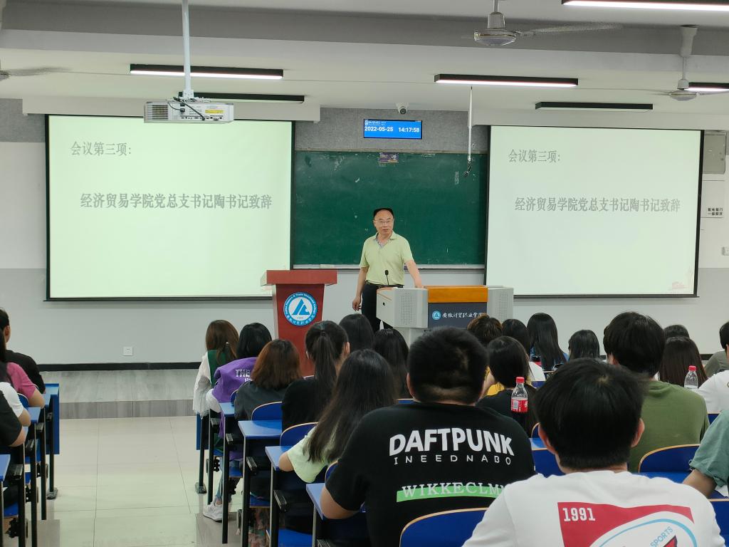 2022年5月25日,经济贸易学院第三次学生代表大会在6102顺利召开,党总支书记陶云龙、党总支副书记丁蓉、团总支书记张超、学生秘书刘桂芳、孙建华及全体专职辅导员参加了会议。