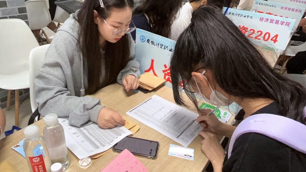 在报到处核对信息后,新生在志愿者的引导下找到各班级位置,在班级助理的协助下填写个人信息并领取校园卡和寝室房卡,最后由志愿者协助将行李送达新生宿舍门口。