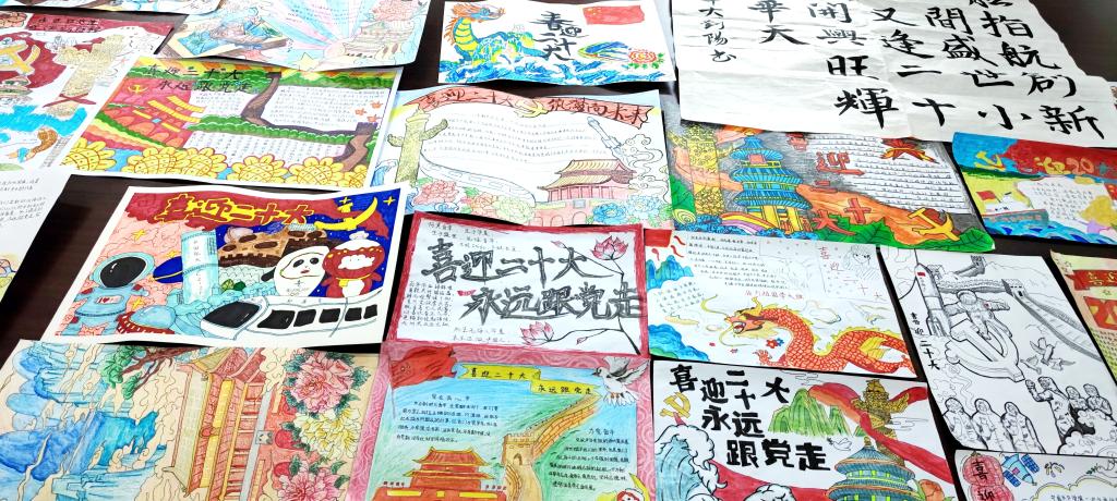 近日,经济贸易学院举办以“喜迎二十大,永远跟党走”为主题的手绘报大赛,面向22级新生征集优秀书画作品。参赛选手借助毛笔、油彩等书画工具,以笔为媒、以画传情,通过精心的布局和着色,绘出热爱党的心声。同学们用色彩点燃青春热情,用文字抒发爱国情怀,为党的二十大献礼。