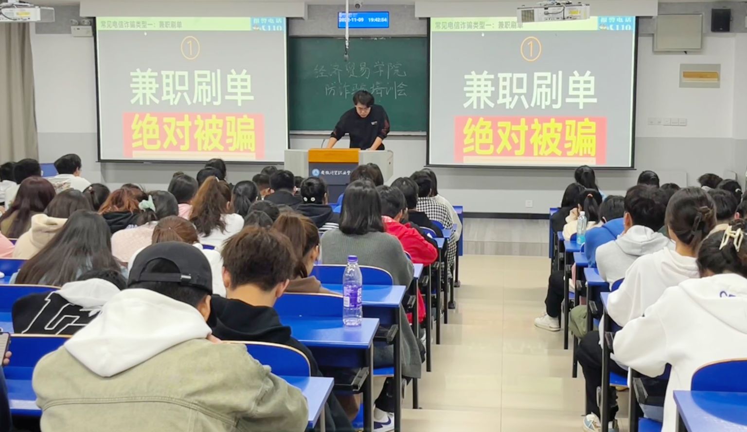 为切实增强学生识骗、防骗能力,提高学生自我防范意识,确保学生财产安全和校园平安稳定,经济贸易学院于11月9日在6101教室开展新生防诈骗培训会。参与本次活动的有经济贸易学院2022级全体权益委员及寝室长。