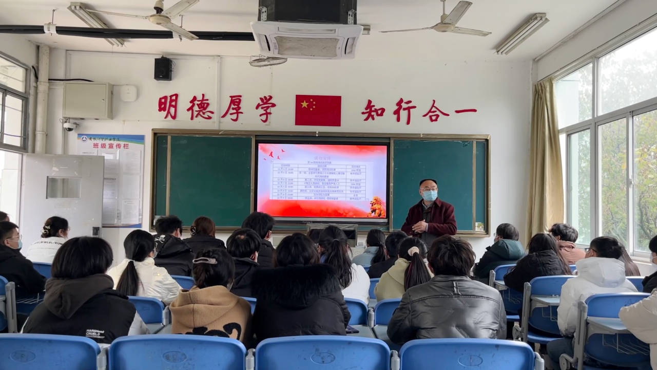12月5日,经济贸易学院在3202教室举办第54期入党积极分子培训班开班仪式。专职辅导员史婉笛主持讲解,经济贸易学院党总支书记陶云龙和35位入党积极分子参会。