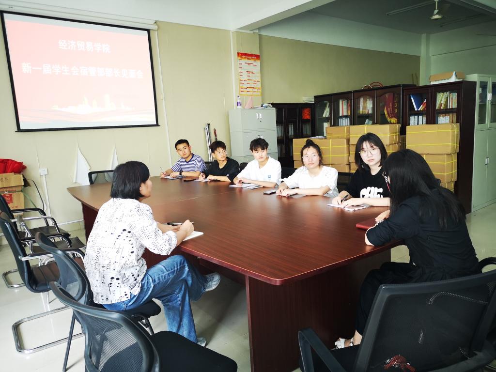 6月20日,经济贸易学院组织召开新一届学生会宿管部部长见面会,重点就暑期宿舍分配问题和新生军训问题展开研讨和任务布置。经济贸易学院团总支副书记丁蓉主持会议,学生秘书和新一届学生会宿管部部长参与会议。