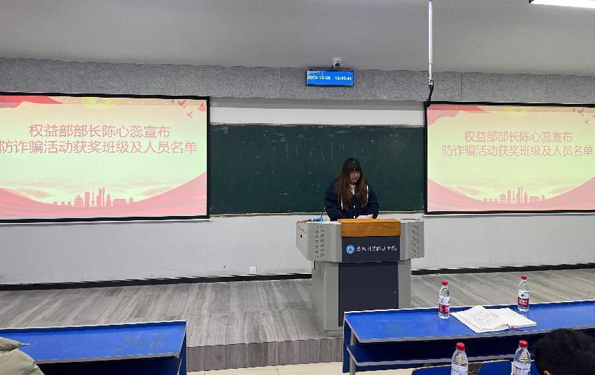 经过评比,电商2210班、造价2301班荣获一等奖;电商2210班、连锁2303班荣获二等奖;工商2301班、人资2303班、造价2303班、人资2304班、物流2301班、国商2303班荣获三等奖;营销2304、电商2305荣获优秀组织班级奖;连锁2301王嘉炜、造价2201黄梦茹荣获最佳编剧奖。本次活动,不仅提高了学生对校园诈骗的认识和反诈能力,推动建设平安校园,还使学生在创作中提升创新能力,提高了综合素养。(供稿:徐浩 审稿:丁蓉)