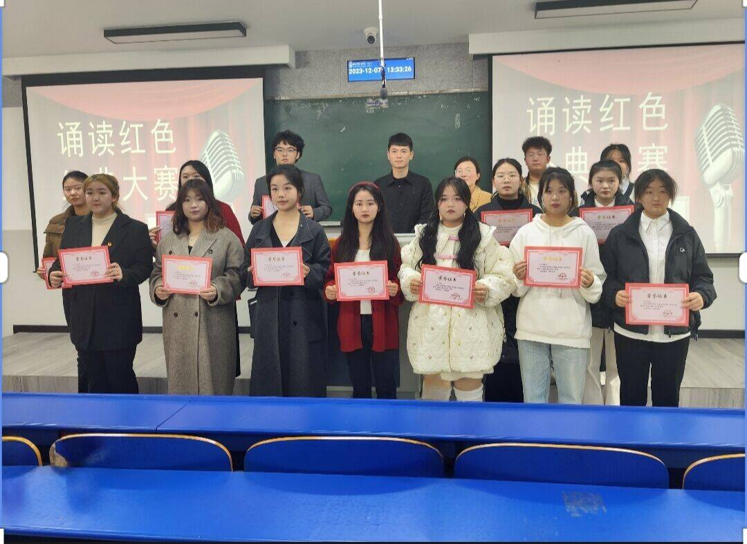 为弘扬革命精神,加强爱国主义教育,经济贸易学院于12月7日在6102教室举办了一场以“品读红色经典,传承革命基因”为主题的诵读红色经典大赛。本次比赛由经济贸易学院团总支组织部承办,专职辅导员史婉笛、学生会主席团及部分团学干部担任本次比赛评委。