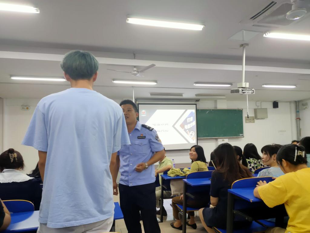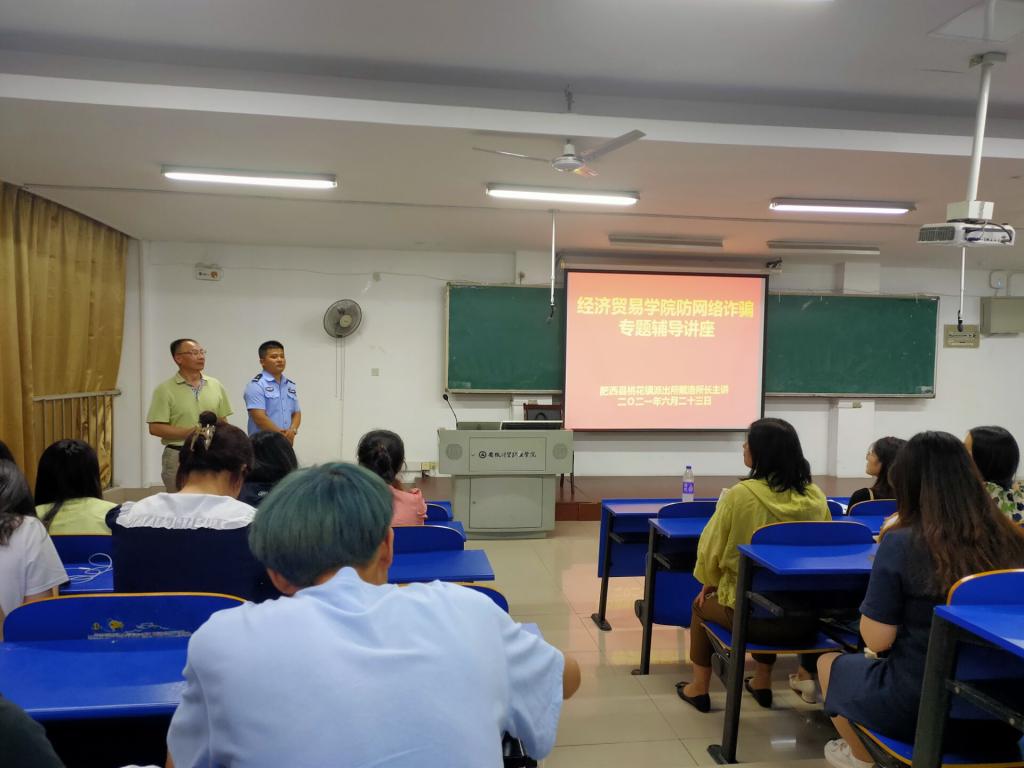 专题会上戴所长以生动幽默的语言为经贸学院师生详细解读了目前社会上存在受骗情况,同学们清晰的了解网络贷款诈骗、招工兼职刷单诈骗、网络购物诈骗、冒充熟人诈骗、游戏账号装备交易诈骗、冒充公检法诈骗、利用网络交友诈骗、网上裸聊等10大诈骗具体情况。讲座中以观看视频、师生提问互动、身边真实案例等形式多样的方式讲述各种受骗过程。师生提问互动环节中同学们积极回答所提出问题,戴所长用诙谐幽默通俗易懂的语言一一为学生们解答问题,讲座中时有笑声,整个专题讲座在一种活跃的氛围中圆满结束。