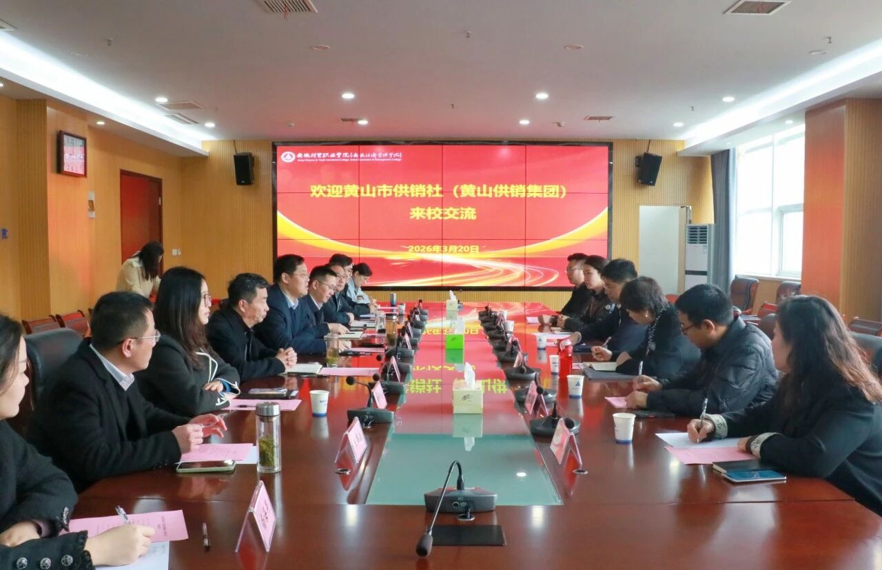座谈会上,双方围绕深化产学研合作、推进产教融合育人、服务乡村振兴等议题深入交流。吴成颂介绍了学校办学特色、专业布局及直播电商、农村金融等优势课程,表示将充分发挥学院在财经商贸领域的专业积淀与人才培养优势,与黄山供销集团携手打造全省供销社系统校企合作的标杆样板。冯家成表示,集团将紧扣“12566”发展战略,依托农产品供应链、为农服务、产业运营等资源优势,与学院深化协同、双向赋能,共同探索产教融合新路径。