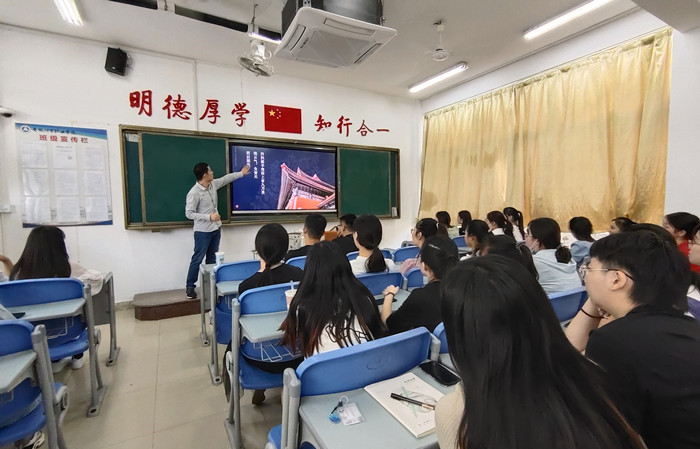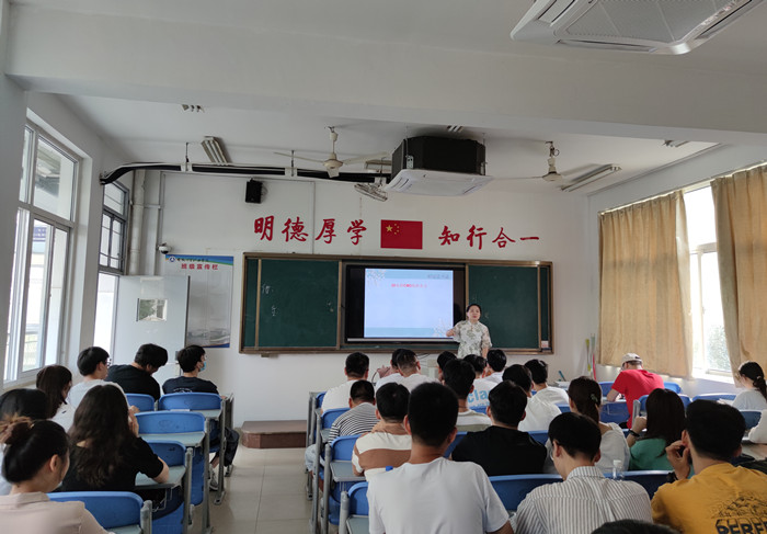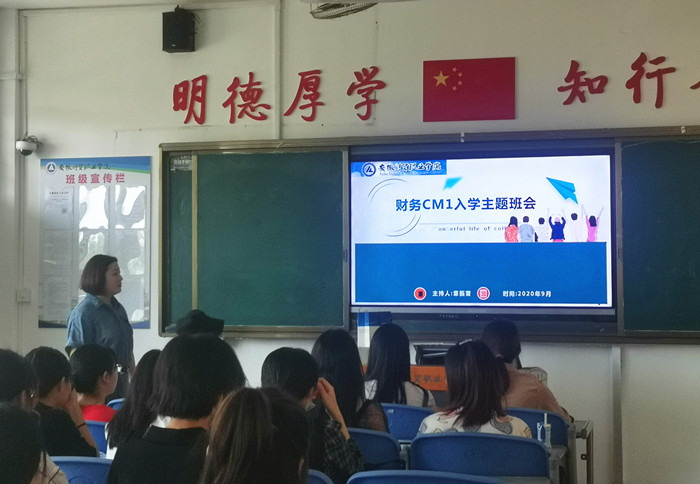 电子商务专业20电商CM0班辅导员朱艳明老师在班会中,介绍学校学生管理方面规章制度,答疑解惑学生关心关切的问题,鼓励新同学尽快适应大学生活新环境,积极营造严谨勤奋的学风和团结友爱的班风。希望同学们在接下来的大学生活中能够认真地规划人生奋斗目标,做好本科阶段学业规划,树立远大的学习和生活目标,努力学好专业课,为将来就业和考研做好充分准备。