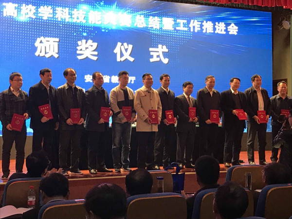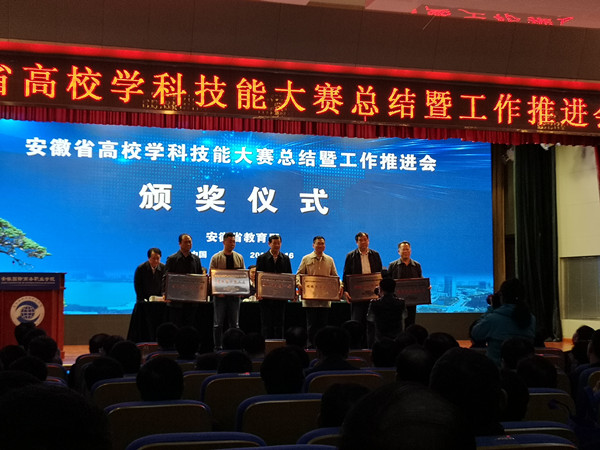 11月16日上午,安徽省高校学科技能大赛总结暨工作推进会在安徽省国际商务职业学院举行。省政协副主席、省教育厅厅长李和平,省委教育工委委员、省教育厅副厅长储常连,省高教处等处室负责人,全省高校负责同志、教务处处长等出席会议。我校校长刘银国出席会议并代表学校领奖,校长助理邓庆安参加会议。 会上,李和平总结了近年来我省高校学科技能大赛情况,对2019年全省学科技能竞赛工作提出指导意见。储常连宣读了2018年省赛团体总分前六名和获得国赛一等奖的学校名单,其中,我校荣获2018年省赛团体总分第六名并获得1个国赛一等奖。