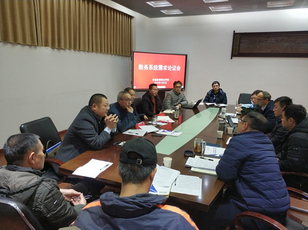 1 月5日下午,学校教务系统需求论证会在第四会议室召开,校长助理邓庆安、徐峰和部分二级学院负责人、办公室主任、教学秘书以及教务处工作人员参加了会议,会议还邀请了两家教务软件供应商参加论证。