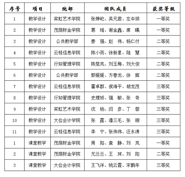 参加信息化课堂教学比赛的4个参赛团队,在比赛现场将前期录制好的参赛作品,从课堂教学设计、教学实施、教学效果和特色创新四个方面展示了完整的课堂40分钟授课过程。每一张幻灯片都是精心设计,每一帧视频都是呕心制作,让评委们眼前一亮,留下深刻印象。最终,茂荫财金学院周阳团队以较强的课程教学驾驭能力获得一等奖第一名。