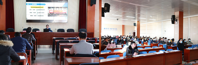 讲座主题为《做好职业教育的内涵建设》,钟晓鹏从文件解读、内容研判、对标对表、项目落实、建设建议五个方面,结合全国及安徽省教育大会、《国家职业教育改革实施方案》等会议、文件精神阐述了“双基”标准化建设和示范创建工作的重要性和迫切性,详细解读了“双基”标准化建设和示范创建达标中各项指标内容与职业教育高质量发展之间的关系,介绍了我院“双基”建设的开展情况,并提出制度建设要配套、分层管理要清晰等建设建议。强调只有以人才培养为一切工作的出发点和落脚点,才是基层教学组织和基本教学活动建设取得成效的关键,才能真正实现高职教育教学的质量提升和内涵发展。