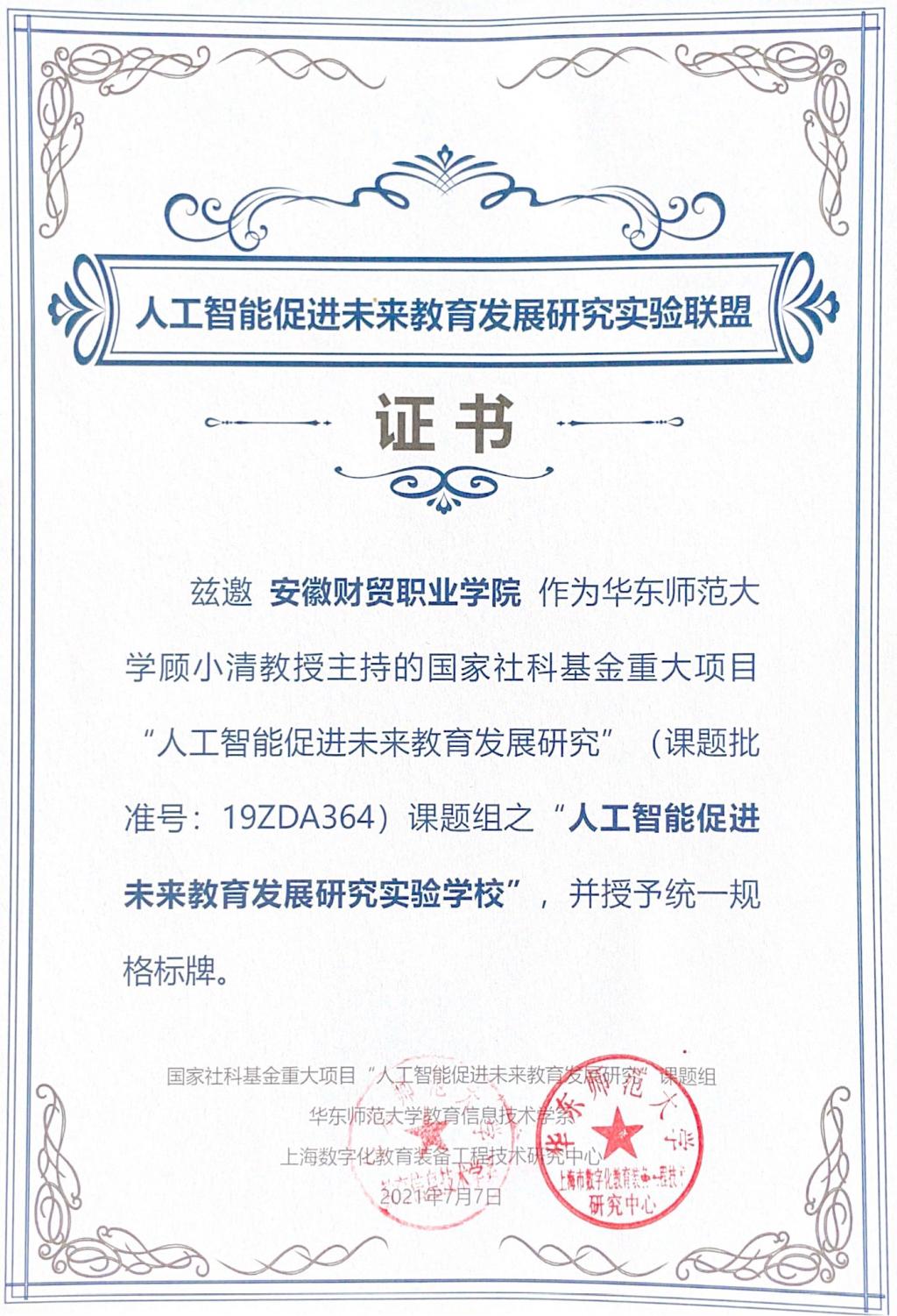 7月7日,国家社科基金重大研究项目“人工智能促进未来教育发展研究”实验校名单公示,校长刘银国教授主持“混合式教学环境下高等职业院校学生自适应学习方法研究”项目成功入选,是安徽省唯一入选院校。