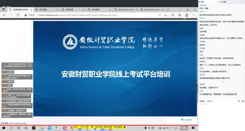 为更好地推进疫情防控时期考试方法改革,确保期末考试工作的顺利进行,4月27日下午和晚间,教务处联合学习通平台为全校教师举办了两场线上考试平台培训活动,帮助教师熟悉并掌握线上考试平台的使用与操作。