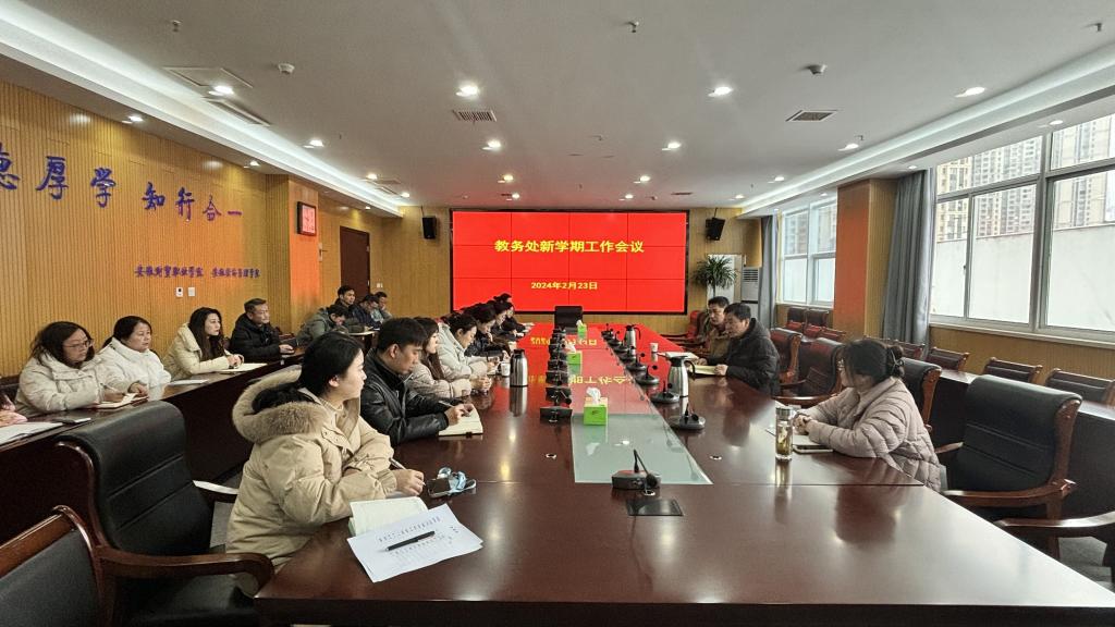 2月23日,教务处在第四会议室召开新学期工作会议,会议由教务处处长方春龙主持,教务处全体人员参会。