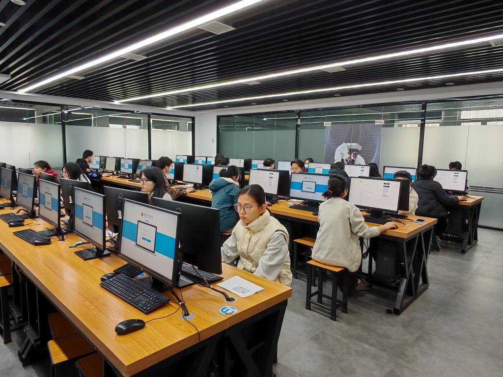 为确保考核工作平稳有序进行,助学中心提前谋划、周密部署,采用"线上预约+集中机考"的混合模式,通过"多课程同机房混考"的组织方式,显著提升了考试资源利用效率。在安徽开放大学协助下,助学中心在考前严格按照相关要求布置考场,精心组织各项准备工作,积极应对考核期间可能出现的各类突发事件,确保考核工作平稳有序进行。