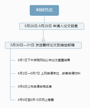学位申请者须于6月7日前通过校园网使用“合肥工业大学学位管理信息系统”完成学位的申请工作,时间节点见右图。学位申请网址:http://121.251.19.90/xwxt4/