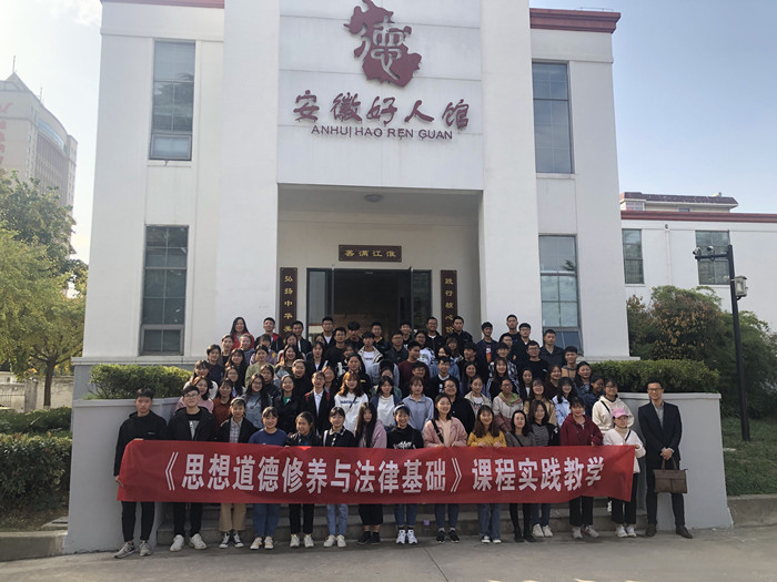 2019年11月13日,马克思主义学院党员教师和同学们一起参加《思想道德修养与法律基础》实践课程,在安徽好人馆聆听江淮大地的感人故事。 安徽好人馆共设有助人为乐、见义勇为、诚实守信、敬业奉献、孝老爱亲等五大篇章,讲述了江淮儿女对社会主义核心价值观的生动诠释。同学们跟随馆内工作人员的讲解,学习了我省上榜好人的光辉事迹,特别是爱岗敬业篇章中小岗村第一书记沈浩的光辉形象、男神潜水员官东的英雄事迹,助人为乐篇章中美丽洗脚妹刘丽公益助学、美丽环卫工周凤珍常年义务献血的感人事迹,诚实守信篇章中别生身父母赡养去世战友父母、兑现与战友生死之约的方海鹰事迹,见义勇为篇章中最美教师朱长海在坠楼一瞬间用身体为轻生学生留下生存希望的强烈信念,孝老爱亲篇章中百岁慈母许张氏婉拒社会救助50年如一日独自照顾瘫痪儿子的坚守,都给同学们留下了深刻的印象和强烈的震撼。