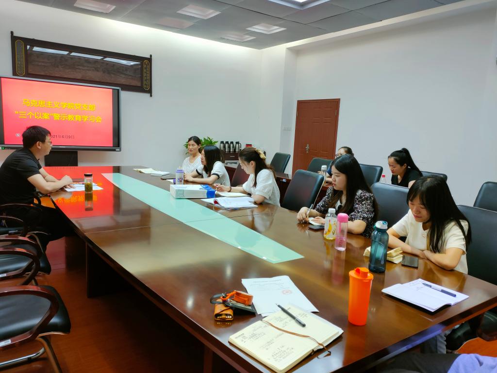 6月9日下午,马克思主义学院党支部召开进一步深化“三个以案”警示教育专题学习会,会议由支部书记王良斌主持。
