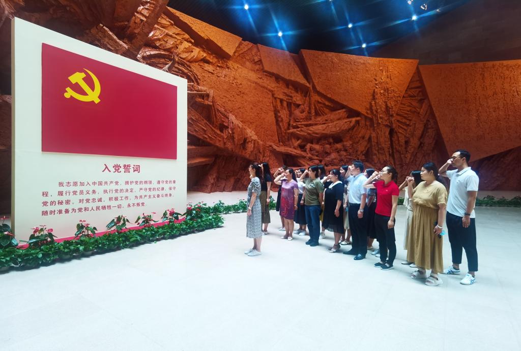 追寻红色记忆,锤炼党性修养。来到渡江战役纪念馆,在国内最大室内群雕组像《占领总统府》前,面对庄严的党旗,重温入党誓词,接受了一次深刻的党性教育和精神洗礼,坚定了作为中国共产党人的初心。在讲解员的指引下,全体党员参观了渡江战役纪念馆的战前形势、战役准备、突破江防、战役胜利、人民支前、英烈业绩等展厅,重温了那段波澜壮阔的革命历程,震撼于“钟山风雨起苍黄,百万雄师过大江”的宏伟气度,真切感受到了党的伟大感召力、战斗力和人民解放军不怕牺牲、奋勇向前的英雄气概,更体会到了“江山就是人民,人民就是江山”的军民鱼水深情。党员们在纪念馆内或驻足凝望,或用心聆听,追忆艰苦卓绝的峥嵘岁月,缅怀革命英烈,纷纷表示要牢记革命先辈们为争取民族独立、人民解放而抛头颅、洒热血的丰功伟绩。