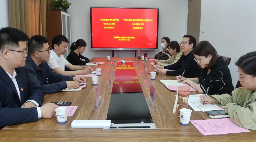 近日,为推动党建共建,促进共同发展,马克思主义学院与天津创业环保集团股份有限公司召开了党建共建交流活动,天津创业环保及长三角区域公司副总经理、党支部委员许平出席了签约仪式,该公司长三角区域公司和马克思主义学院部分党员代表参加了共建签约活动,会议由马克思主义学院党支部书记张少兵主持。