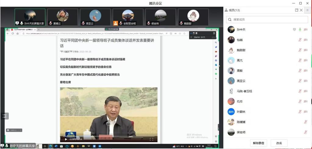 会上,鲍甜甜、孙中天、包越、叶蔚林四位老师领学了《中共中央政治局第六次集体学习会议精神》《习近平总书记在团中央新一届领导班子集体谈话时重要讲话》《“七一”前夕召开的党的组织工作会议精神》《习近平总书记考察江苏时做出的重要指示》等文件精神,并播放了相关视频新闻供党员集中学习。