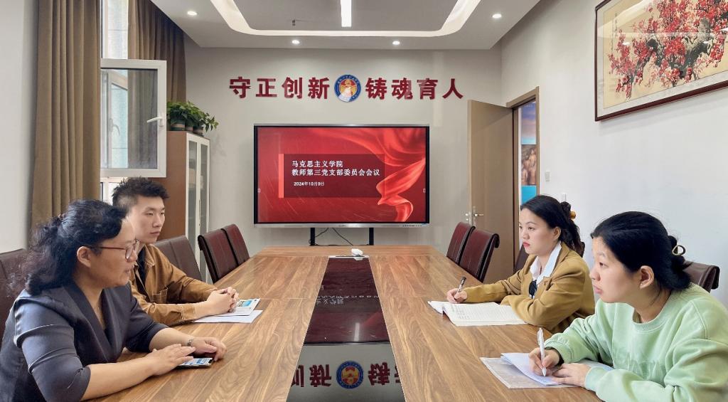 10月9日下午,马克思主义学院教师第三党支部在品读室召开十月份支委会,支部书记徐明主持会议,支部委员参加会议。